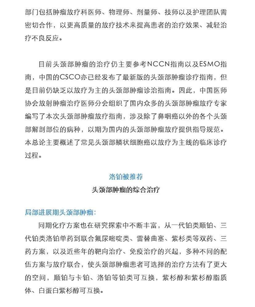 洛鉑入選中國(guó)頭頸部腫瘤放射治療指南(2021版)